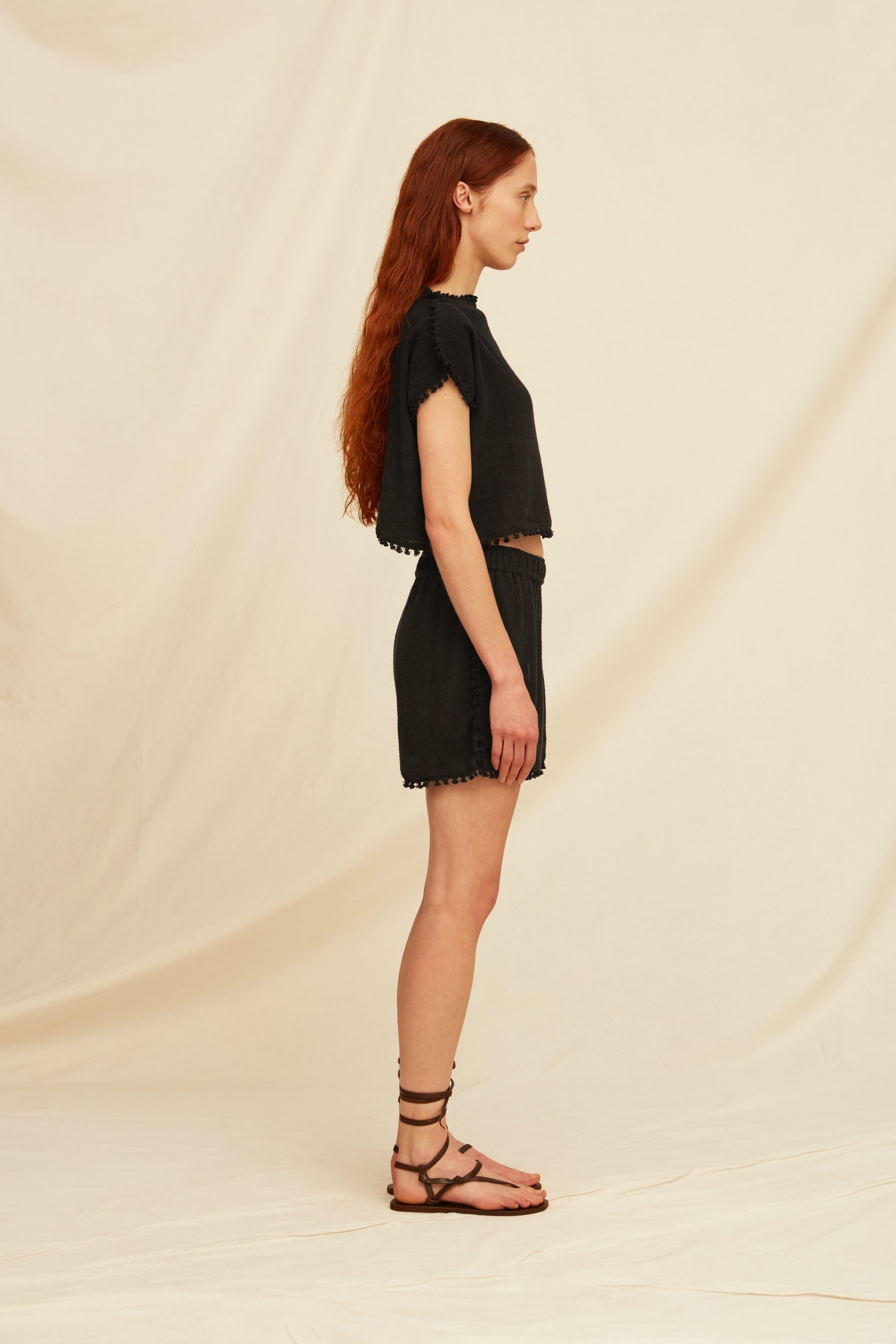 Sharp lines and soft edges. The Acaxha is a simple cut layered with tension: neat knots, feathered fringe, and that sense of considered nonchalance that lingers long after dark. Meant for bare arms, layered chains, or nothing at all. A piece that doesn't need styling - only attitude.