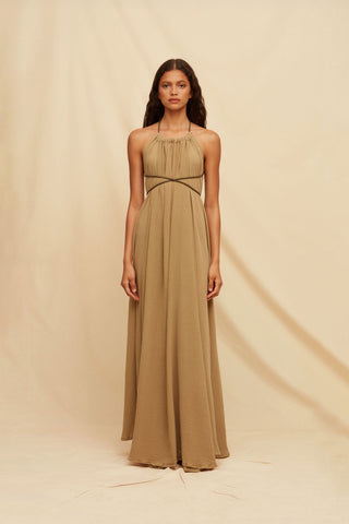 A fluid cotton dress designed for ease, movement, and warmth of tone.