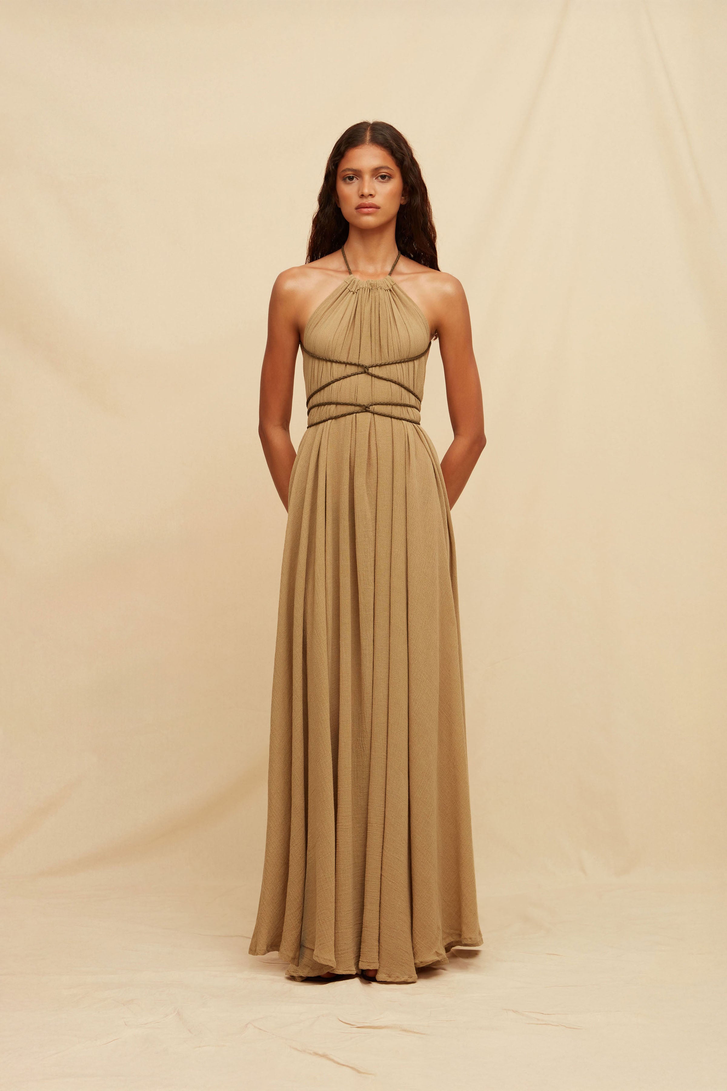A fluid cotton dress designed for ease, movement, and warmth of tone.