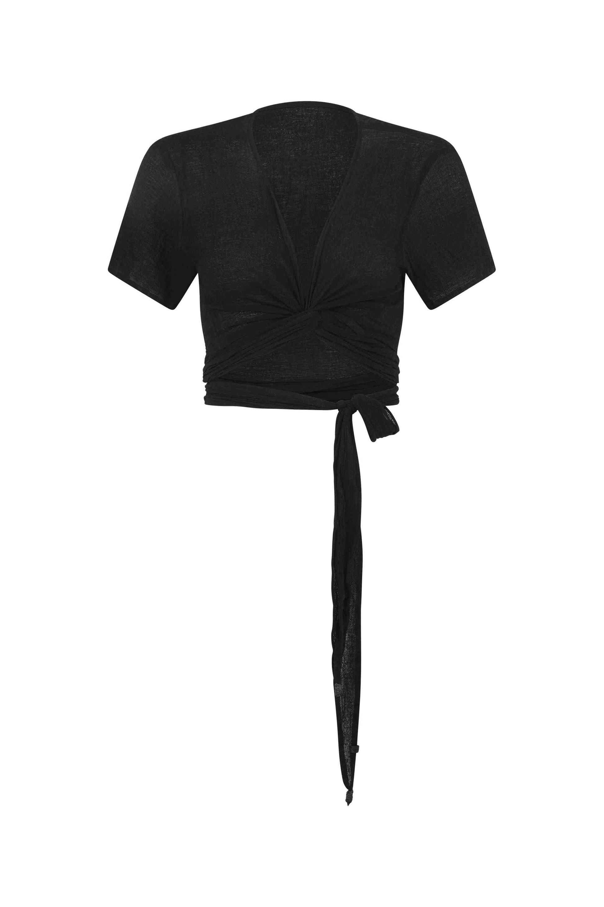 Enjoy sunrays on your arms in the short-sleeve rendition of our LAHUN top, LAHUNCITO. Its simplistic wrap-shirt design is elevated with lengthy cotton pieces that allow you to play, tie, and twist this piece differently, changing your aesthetic.