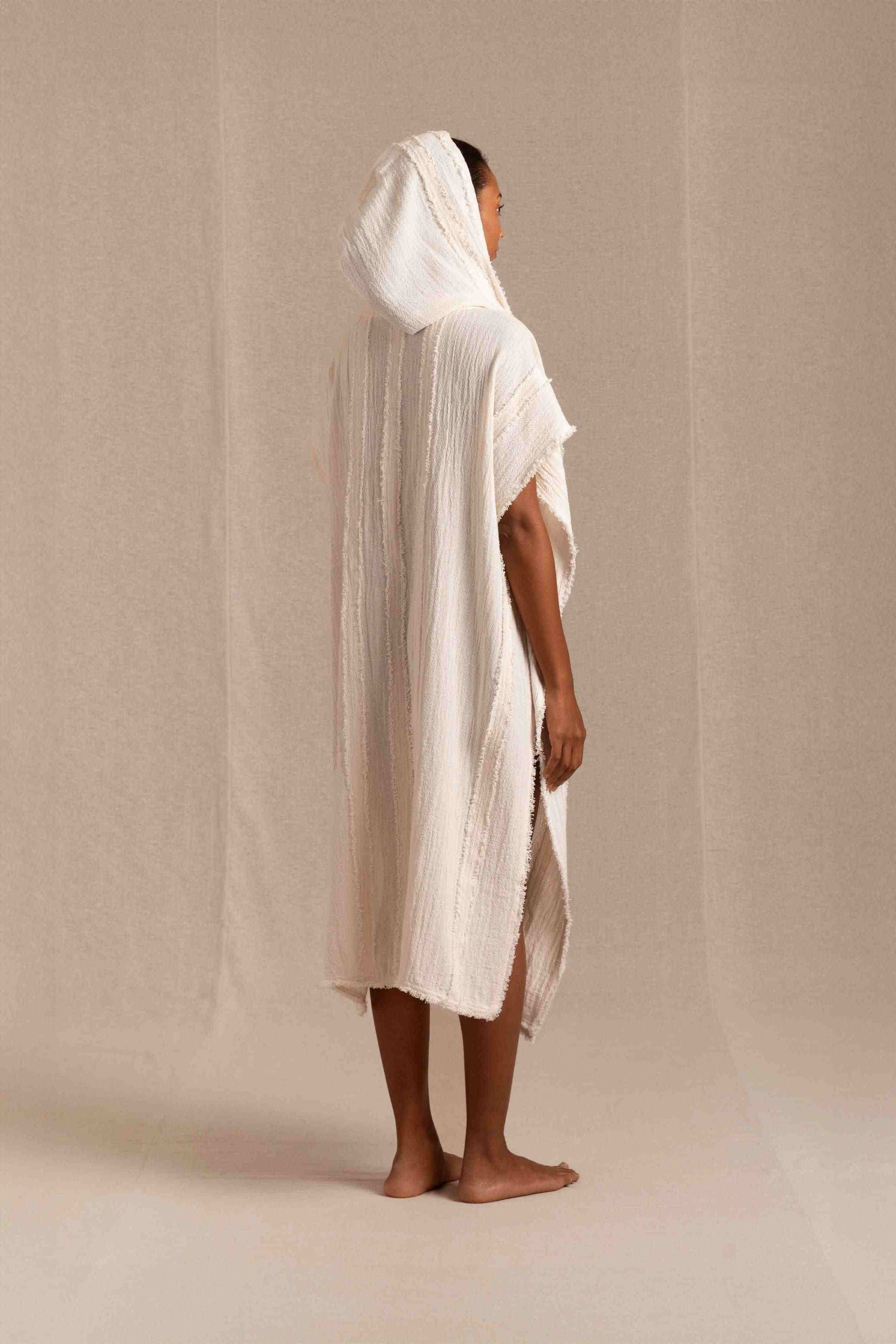 • Cotton jute blend with hooded poncho design