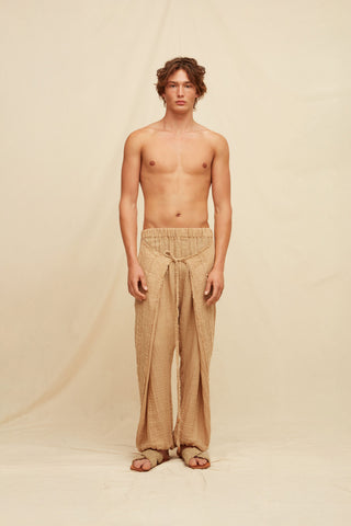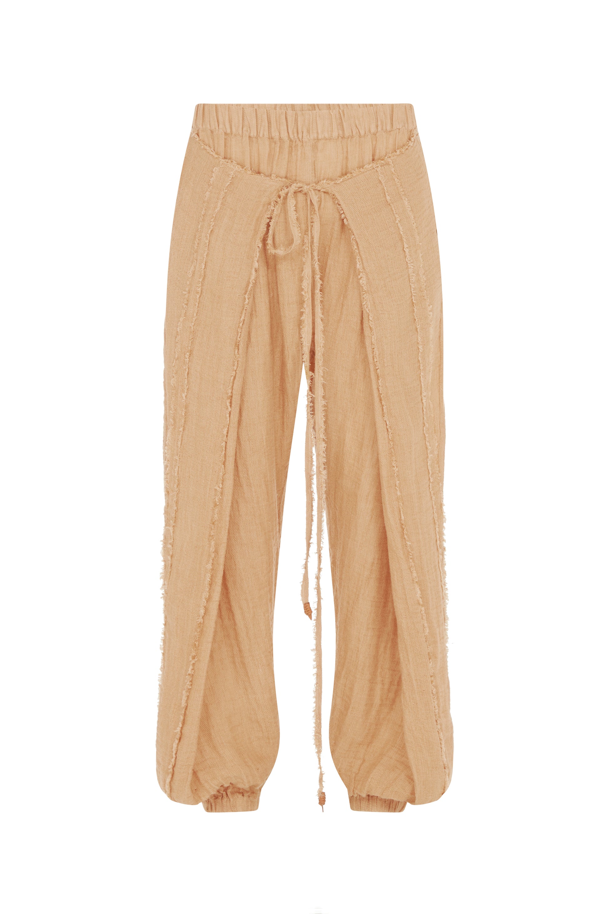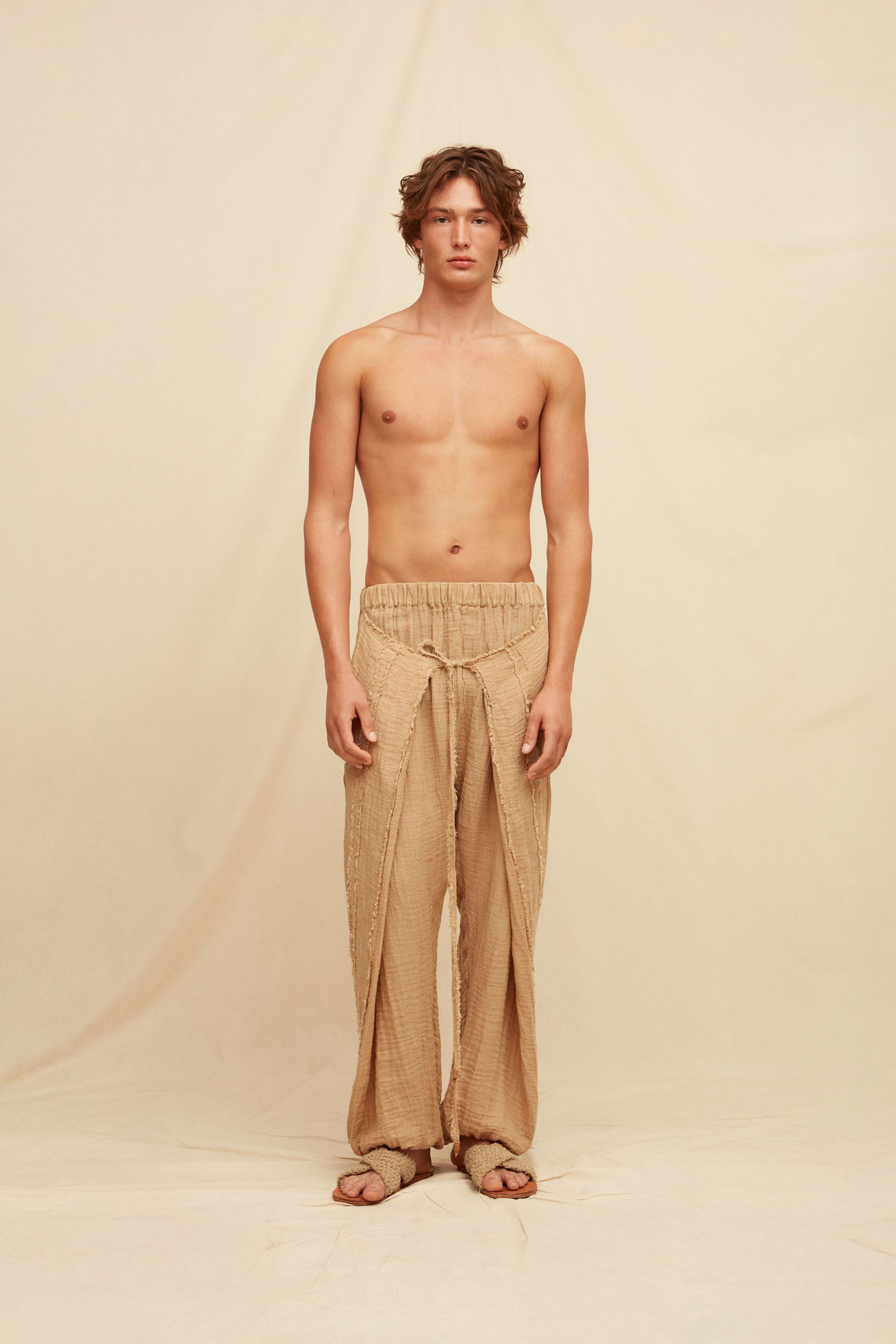 In a soft, easy shape, the Tokchalak Pants cross and tie at the waist in a subtle wrap, finishing in gathered cuffs that sit just above the ankle. Relaxed but intentional, they move between lounge and street without missing a step. Wear them your way - theyÕll follow.
