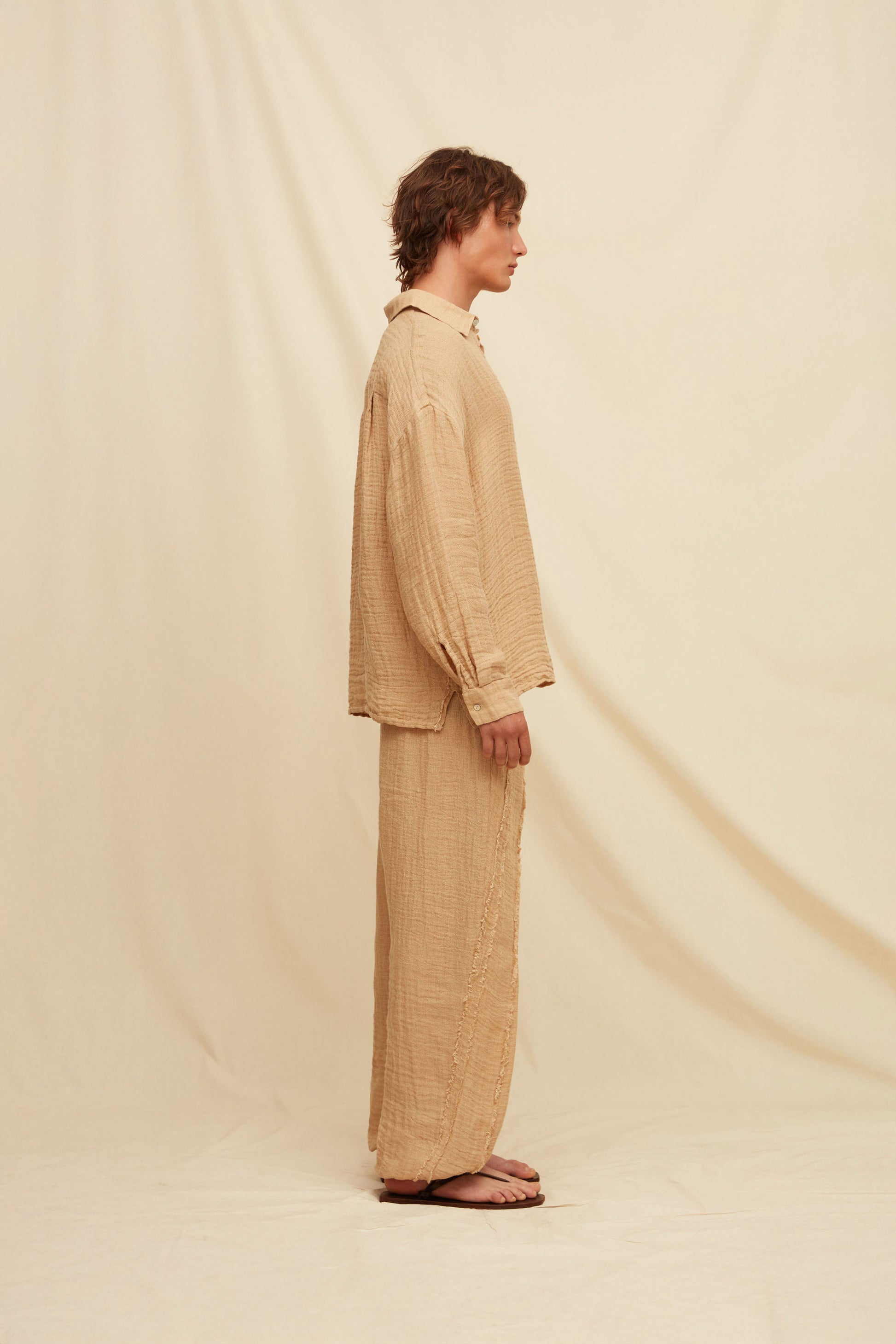 Tailored for everyone. The Tsuukul is a half-button shirt with a classic collar, long sleeves and cuffed wrists. Worn soft and open or buttoned with purpose, it balances structure and simplicity. For quiet mornings, long evenings, and all the shifts in between.