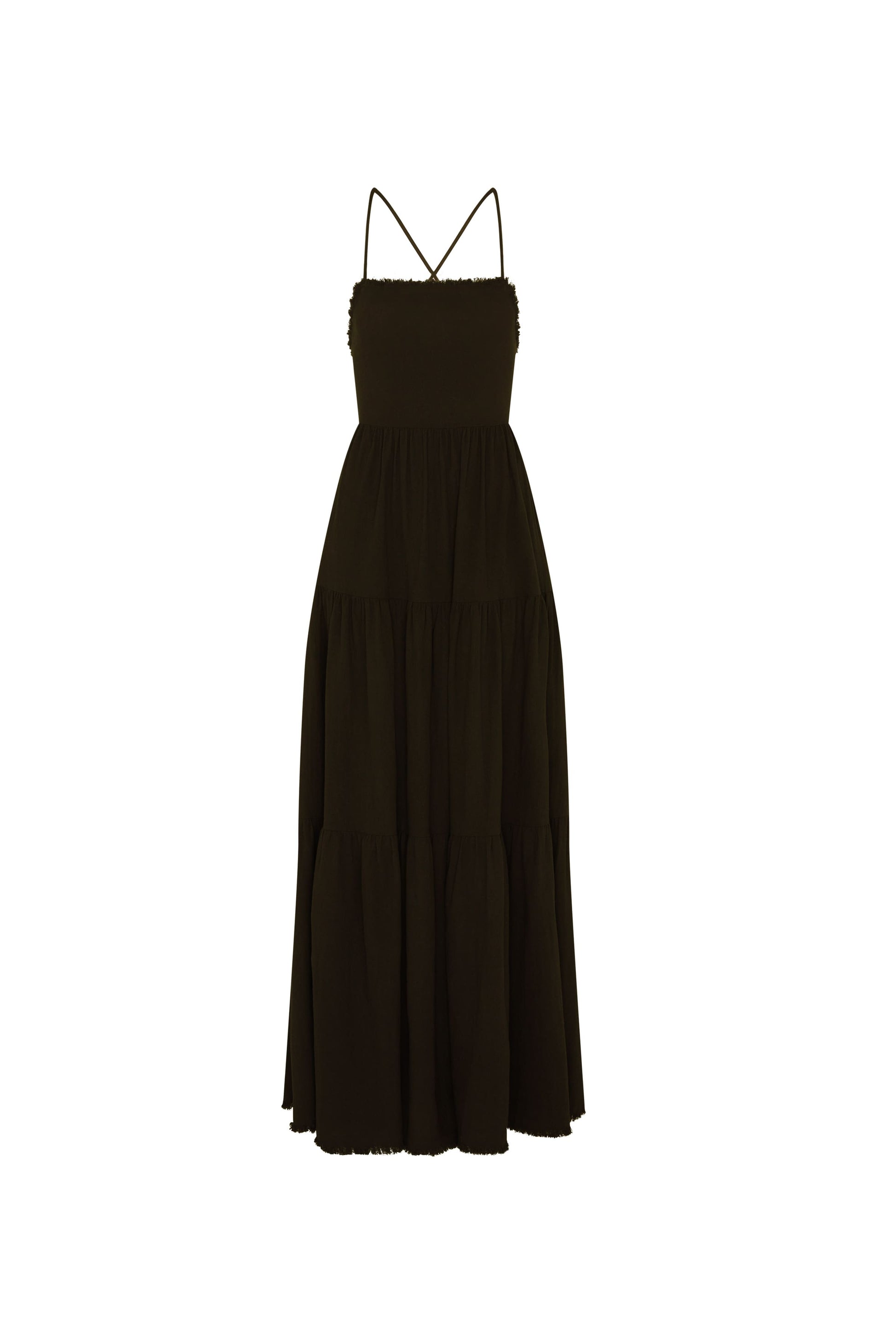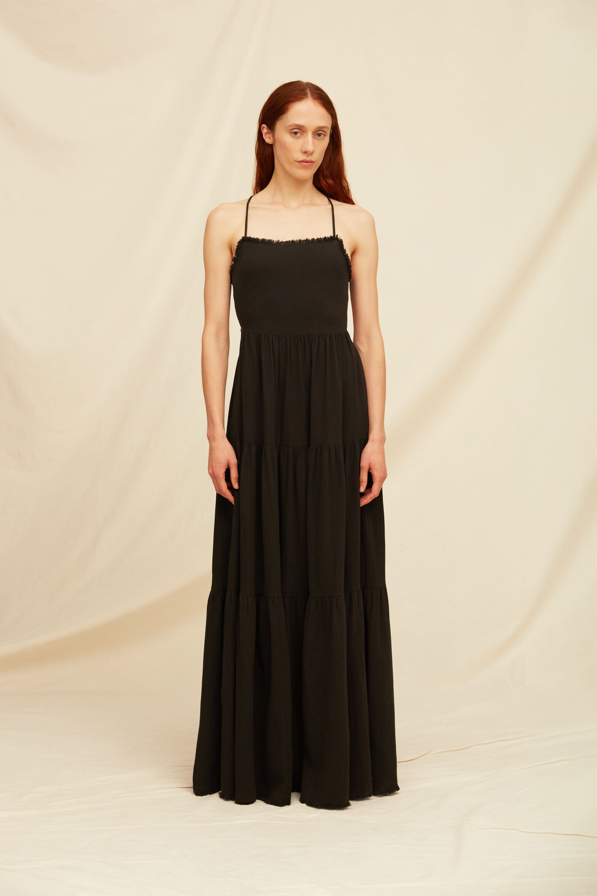 Voluminous and versatile, this square-neck dress was made to move. With switchable straps, full tiers, and side pockets, it’s the kind of piece that adapts to mood and moment. Feminine without fuss. Slightly flirty, always free.